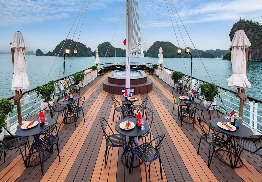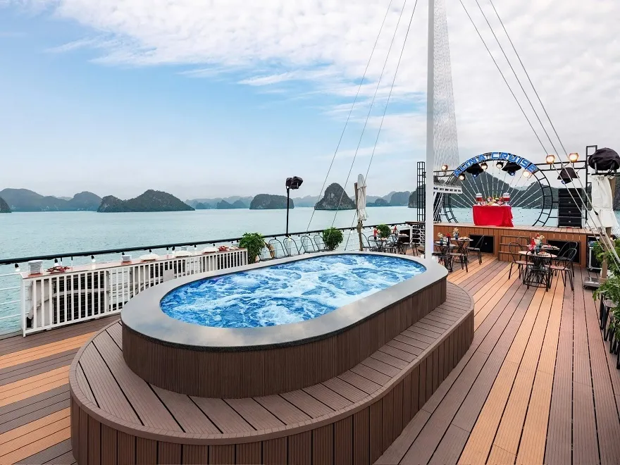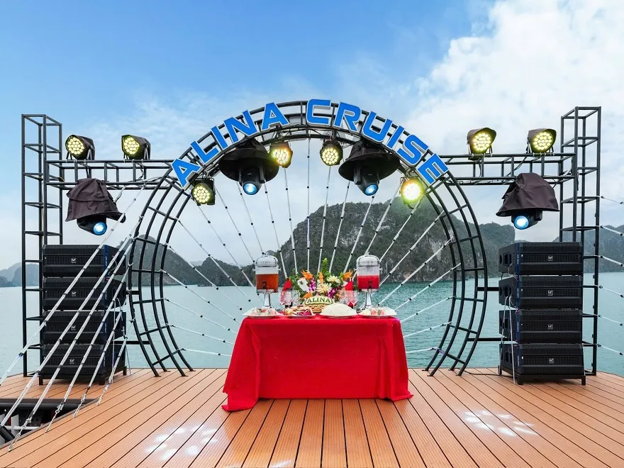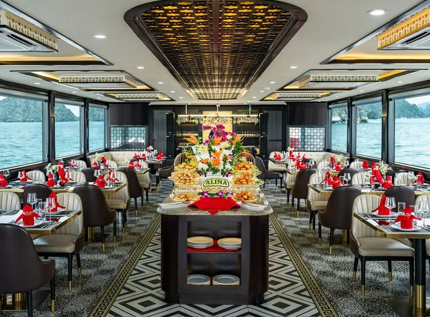 Điều làm nên sự khác biệt của Alina không chỉ nằm ở thiết kế, mà còn ở trải nghiệm giải trí và tiện nghi đỉnh cao. Du thuyền sở hữu một bể sục Jacuzzi cỡ lớn ngay trên boong tắm nắng và đặc biệt là một sân khấu đẳng cấp được trang bị hệ thống âm thanh, ánh sáng sự kiện chuyên nghiệp, công suất lớn, hứa hẹn mang đến những “bữa tiệc âm nhạc thịnh soạn” cho du khách. Để đảm bảo sự thoải mái tuyệt đối, toàn bộ du thuyền được trang bị hệ thống điều hòa không khí mát mẻ và Wi-Fi miễn phí tại khu vực nhà hàng. Sứ mệnh của Alina là định nghĩa lại trải nghiệm du lịch trong ngày, biến một chuyến tham quan đơn thuần thành một kỳ nghỉ dưỡng đẳng cấp, sôi động và đầy cảm xúc.