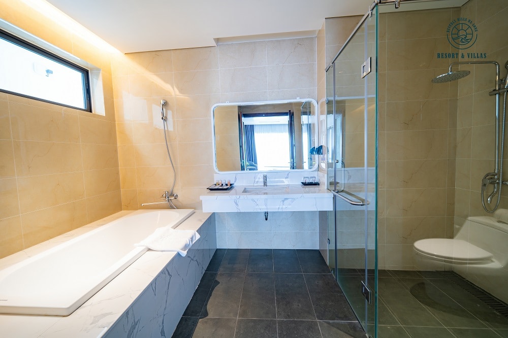 - 07 nhà tắm riêng , 08 WC đầy đủ đồ dùng : sữa tắm , dầu gội , khăn tắm , khăn mặt , kem đánh răng , vv …