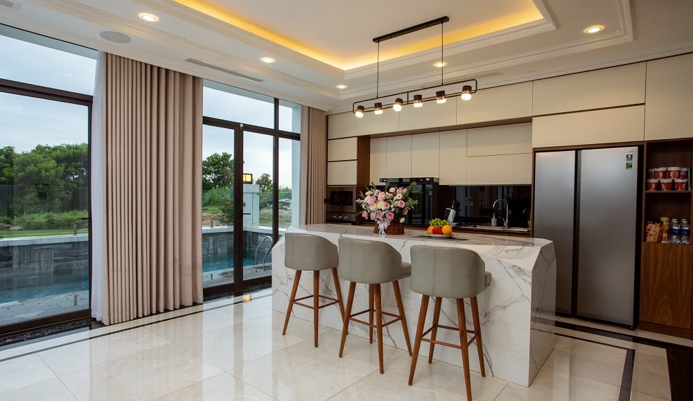 📌Khách hàng được nấu nướng trong villa cũng như trong khuôn viên của căn. Để đảm bảo vệ sinh căn hộ và an toàn cháy nổ khách hàng vui lòng thanh toán phụ phí nấu ăn và vệ sinh tại villa là 1.000.000 Đ / Ngày . Khách hàng có nhu cầu nấu ăn tại villa vui lòng đăng kí trước với ban điều hành.