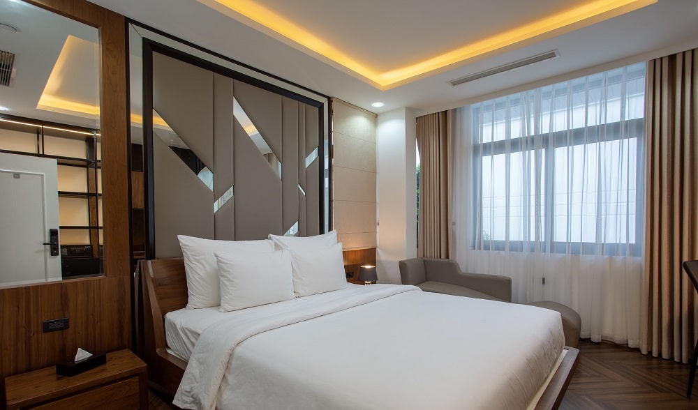 • Phụ thu check out muộn 500k/giờ trước 15h00, từ 15h-18h tính 50% giá trị tiền phòng, sau 18h tính 100% giá trị tiền phòng; check in sớm: 500k/giờ.