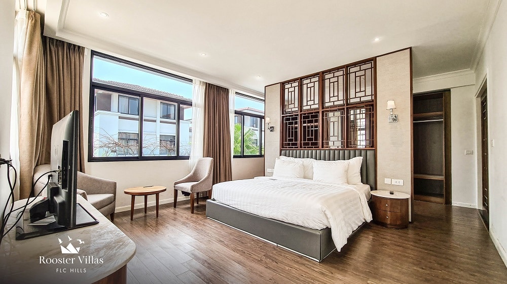 • Biệt thự có 04 phòng ngủ với kích thước gường: 01 gường 1,8m; 03 gường 1,6m; 05 phòng tắm đầy đủ tiện nghi