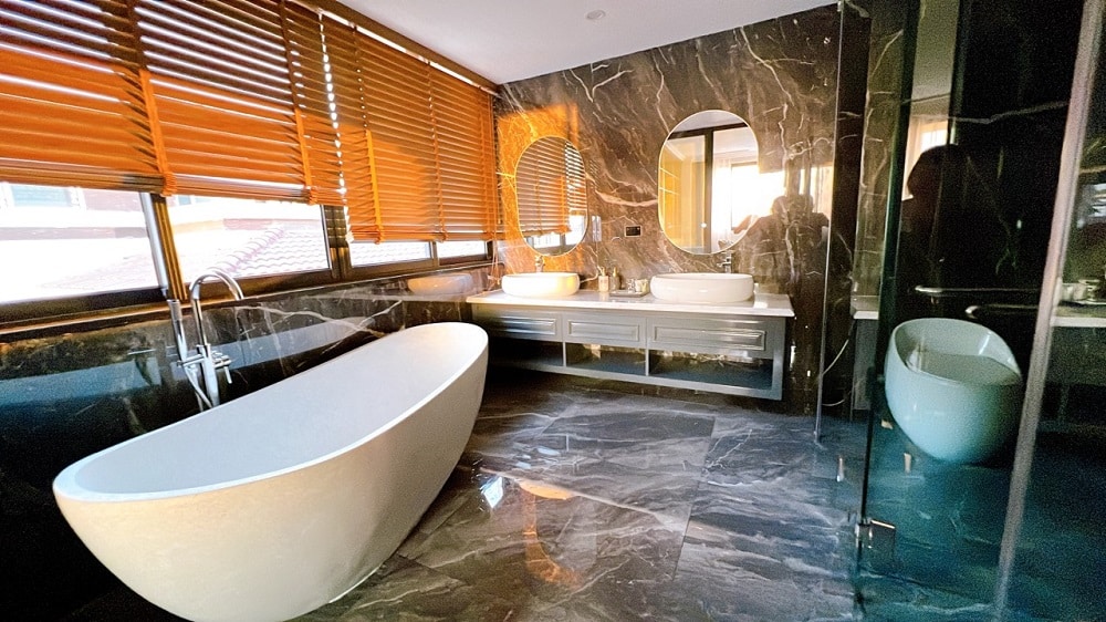 - Biệt thự có 06 phòng ngủ với kích thước gường: 04 phòng gường 1,8m, 01 phòng 2 gường 1,2m, 01 phòng trẻ em 2 gường tầng (4×1,2m); 06 phòng tắm đầy đủ tiện nghi (02 phòng có bồn tắm riêng sang chảnh)